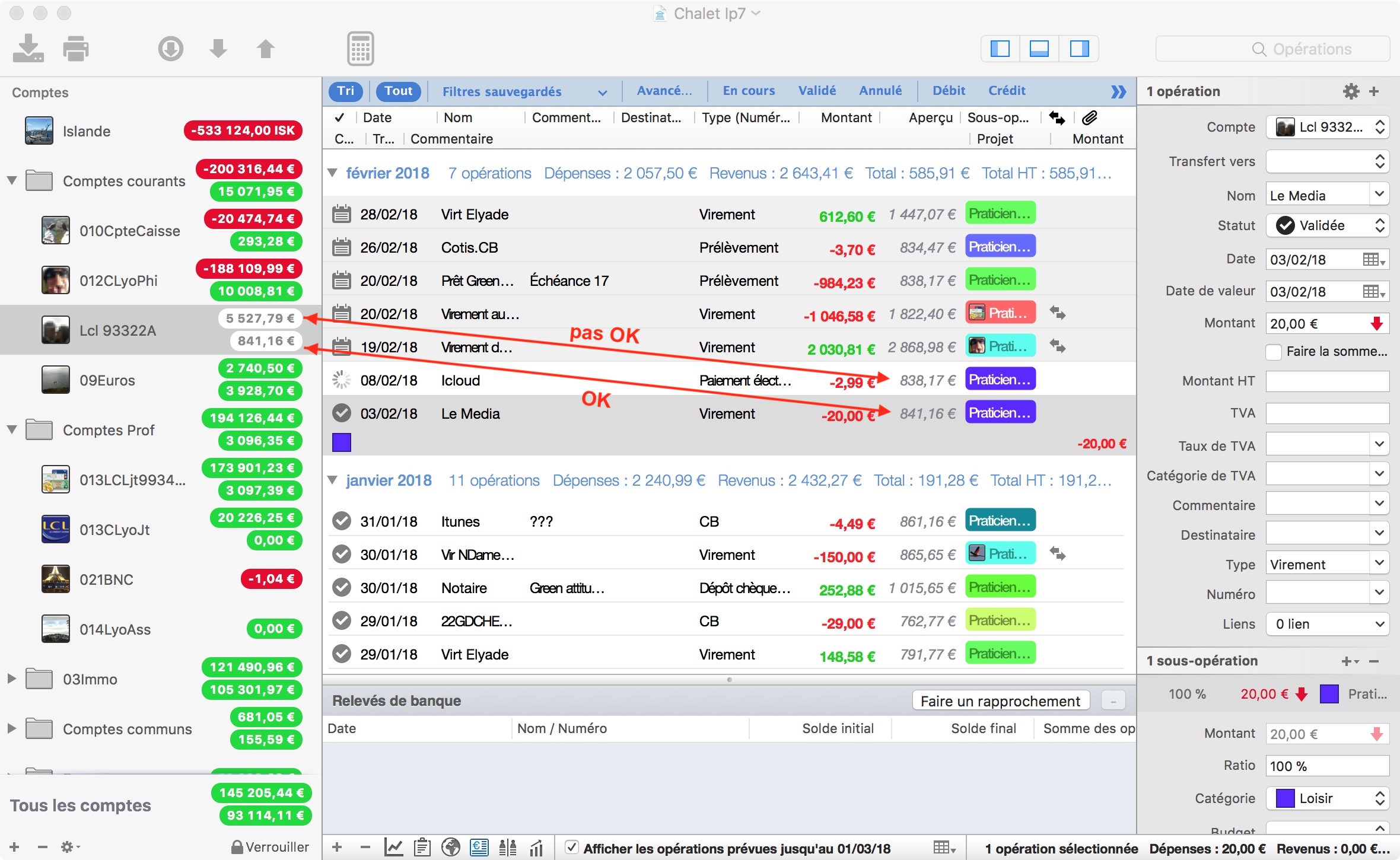 Le solde affiché dans la colonne de gauche ne prend pas en compte les opérations prévues alors que l'aperçu dans la liste des opérations les prend en compte lui.Philavoile a écrit : ↑07 février 2018, 19:02 mais tjrs différent de celui qui apparait dans la colonne de gauche... qui doit correspondre à qq chose mais je ne vois pas