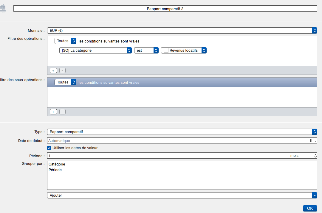 Afin de creuser, j'ai créé un nouveau rapport, avec pour sélection une de mes catégories revenu.