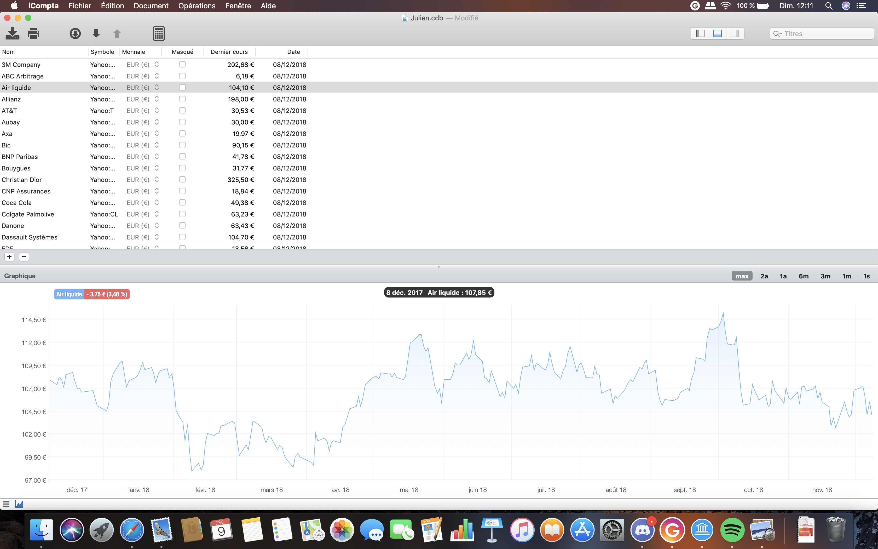 L'historique sur Yahoo remonte loin mais iCompta ne semble pas les télécharger sur plus de 2 ans.
